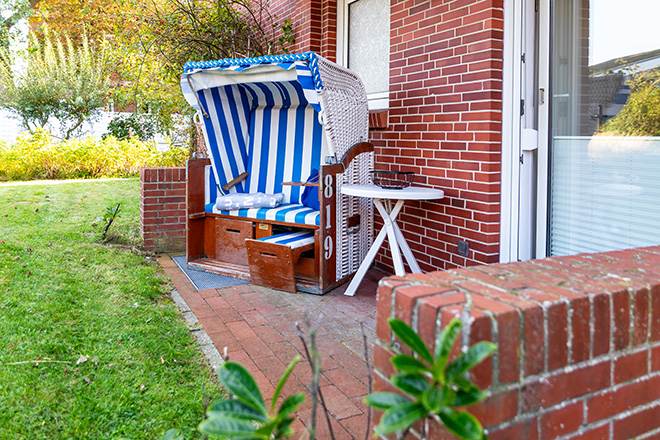 Komfortables 2-Zimmer-Appartement mit einem separaten Schlafzimmer mit Boxspringbett und Etagenbett und Zugang zur Südterrasse, einem Wohnzimmer mit einem ausklappbaren Schlafsofa und Zugang zu 2 Terrassen zum Schiffchenteich und Kurplatz, einer separaten Miniküche mit Geschirrspüler und Mikrowelle, Bad mit Fenster und einem separaten Gäste-WC.